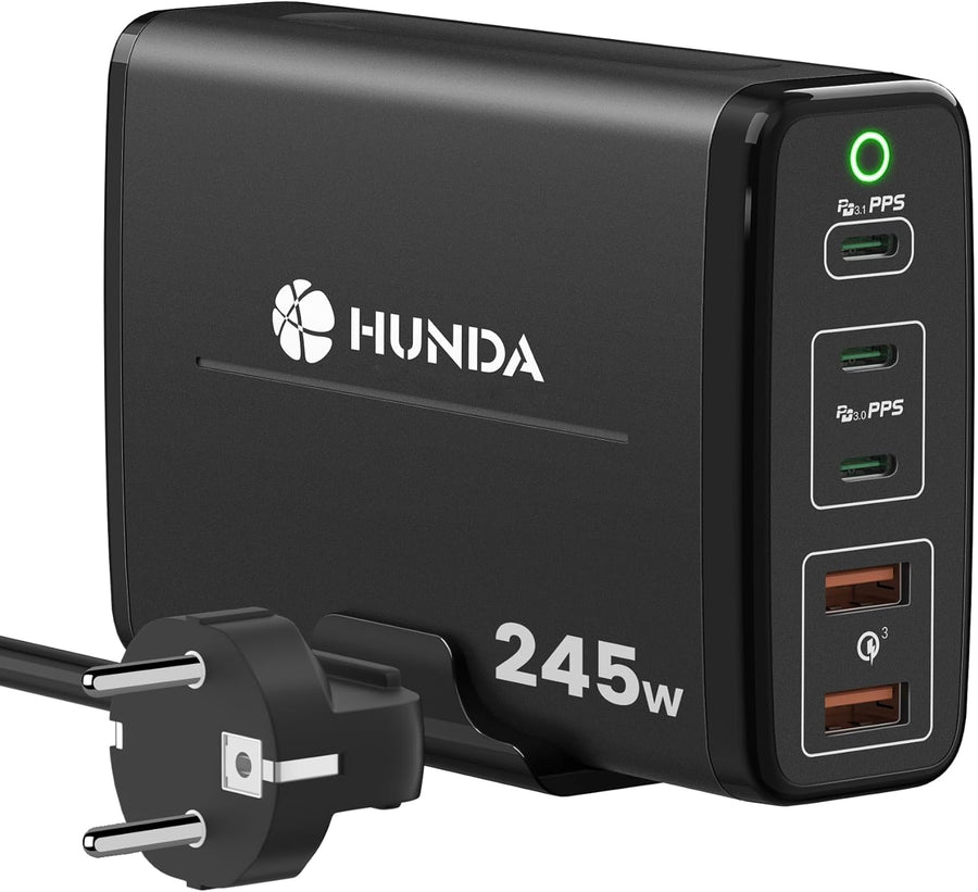 245W USB C Ladegerät,HUNDA GaN USB C Ladegerät Mehrfach 5 Ports,USB C Schnellladegerät Unterstützt P