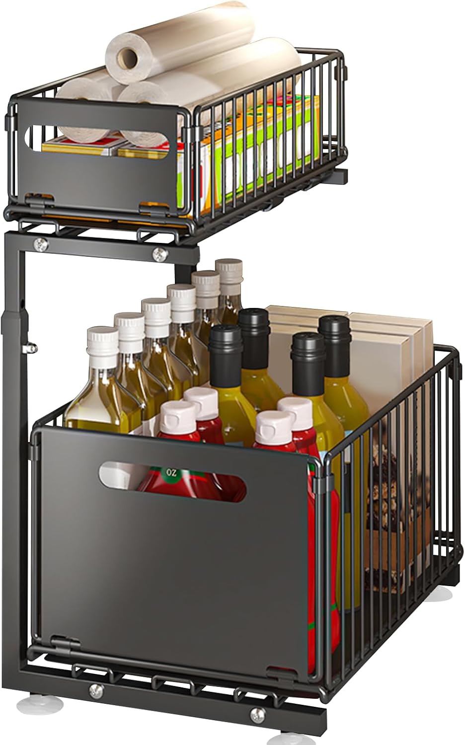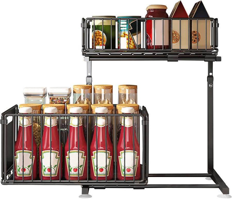 Ausziehbarer Organizer aus Metall, Aufbewahrung unter der Spüle, verstellbar, ausziehbar, Schublade,