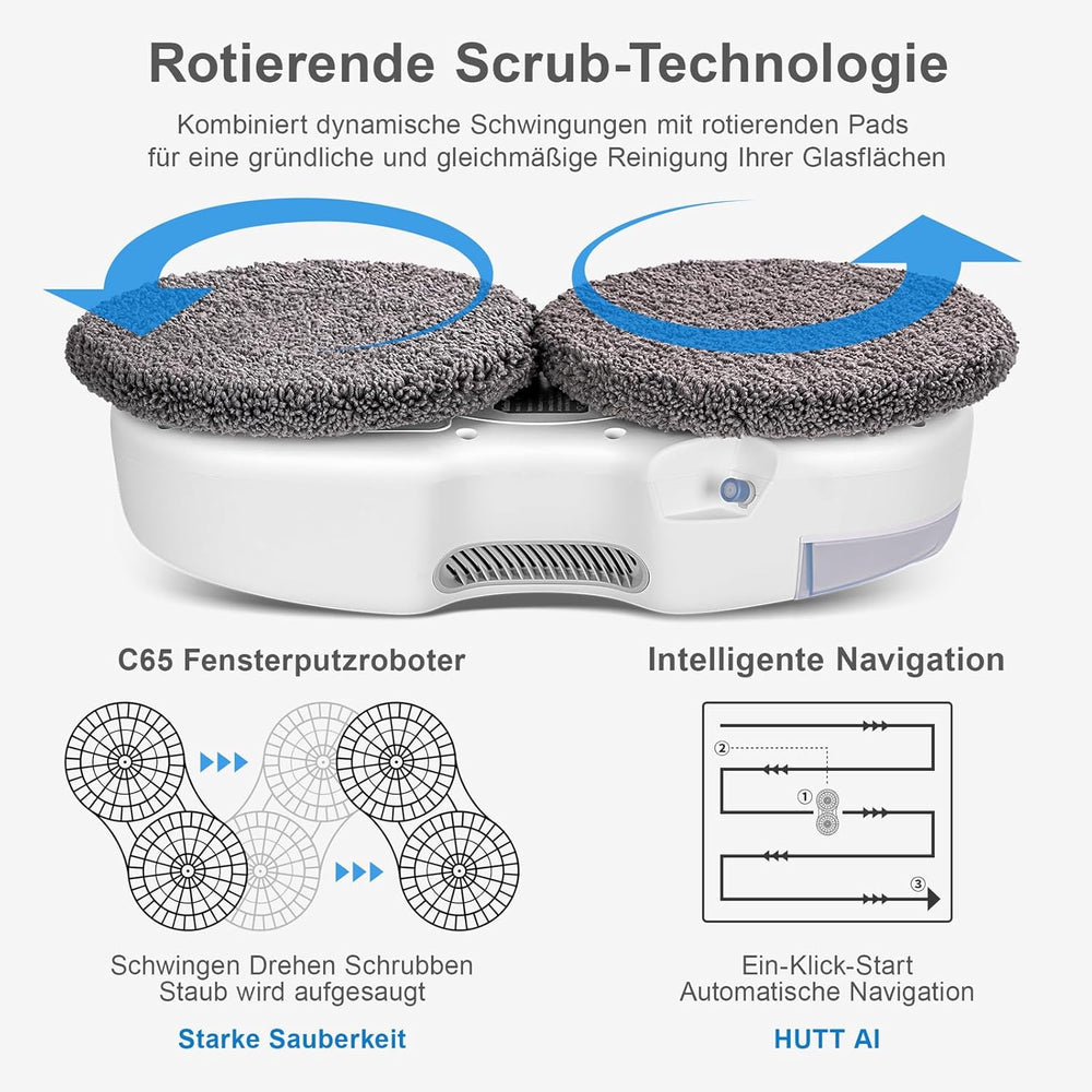 HUTT C6 Fensterputzroboter mit Sprühfunktion, Elektrischer Fensterputzer Fernbedienung mit 80ML Tank