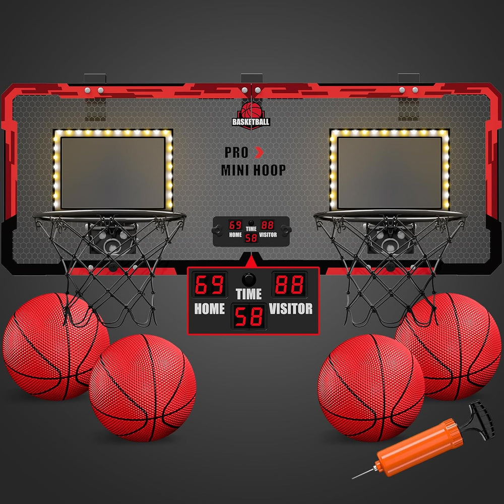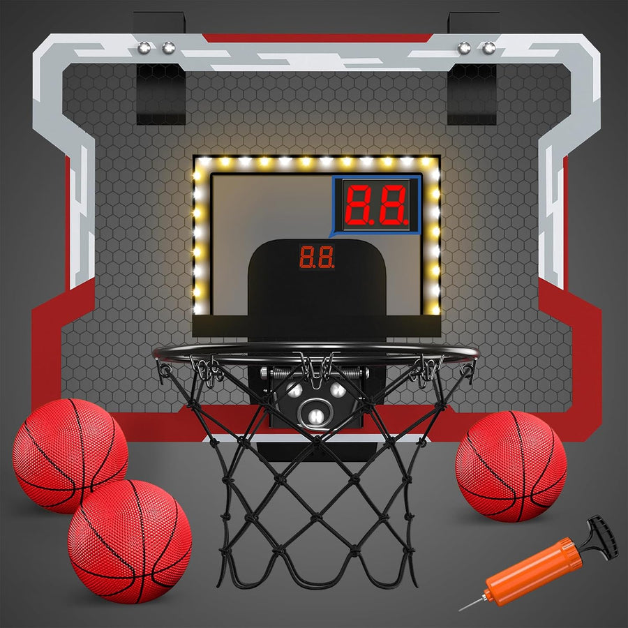 HYES Mini Basketballkorb für Kinder, Zimmer Basketball Set Mit Elektronische Anzeigetafel, LED Beleu