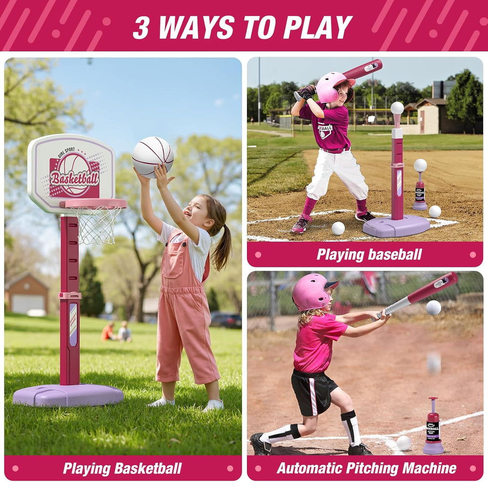 HYES 2 in 1 Basketballkörbe Kinder und T Ball Set, Basketballkorb Ständer Outdoor Indoor Höhenverste