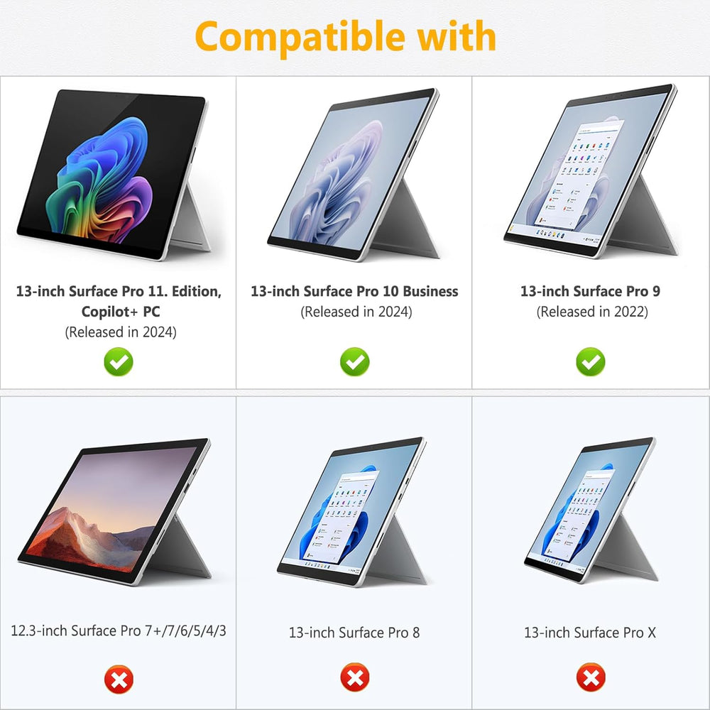 HYZUO Hülle für Surface Pro 11 2024, Surface Pro 10 2024, Surface Pro 9 2022, Mehrwinkelbetrachtung