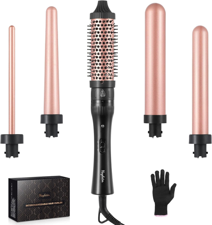 Lockenstäb 5 in 1, Haglater Keramik Lockeneisen mit Multifunktion Lockenbürste, Lockenstabe mit Vers