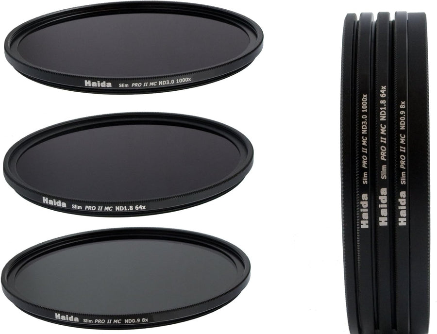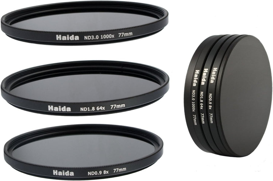HAIDA Ultra Slim NanoPro MC ND Graufilterset 8X, 64x, 1000x - 77 mm, inkl. Stack Cap Filtercontainer