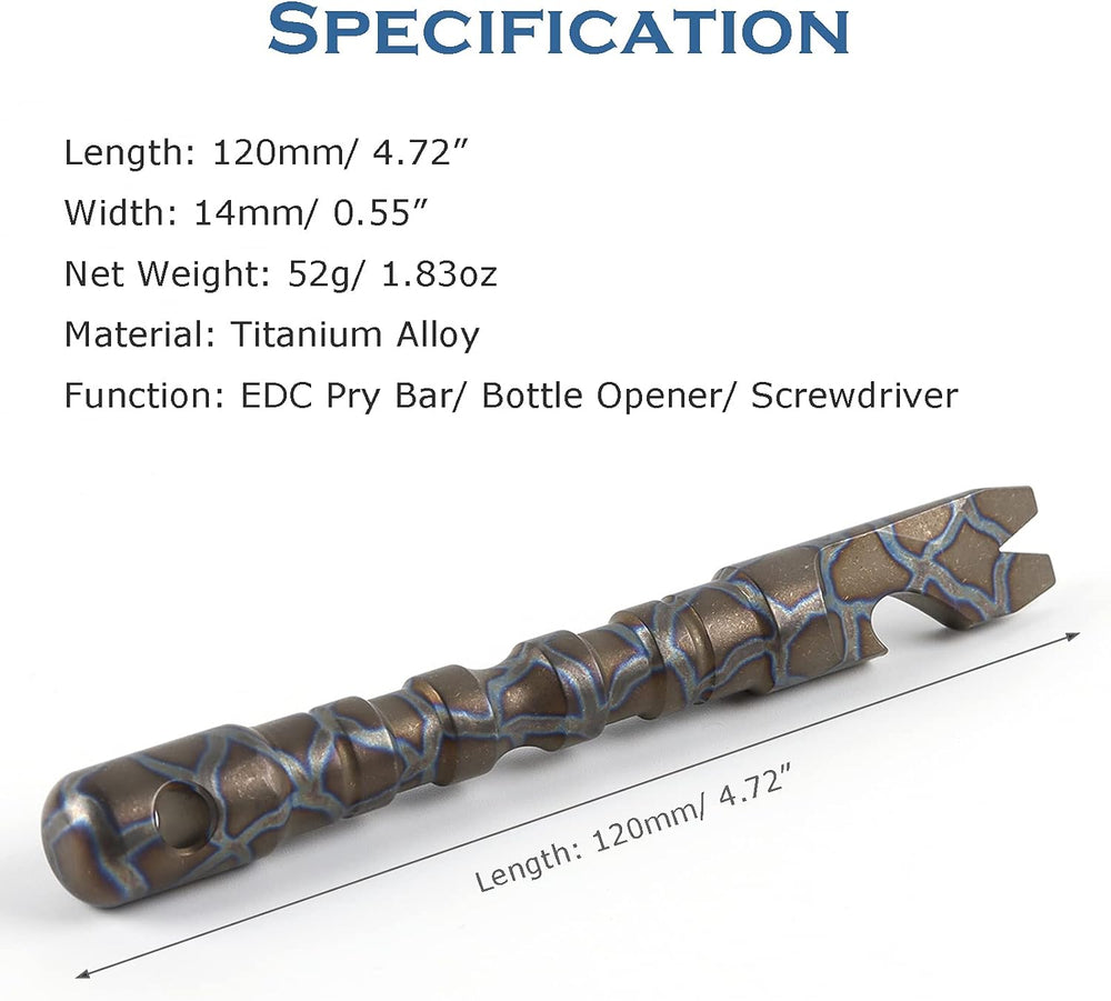 Hamans EDC Stemmeisen aus Titanlegierung, mit Flaschenöffner, Schraubendreher-Funktion, Multifunktio