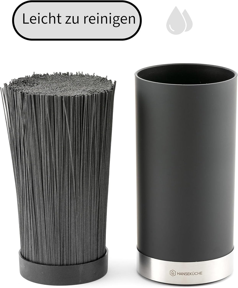Hanseküche Universalmesserblock ohne Messer - Rund, Schwarz - Mit herausnehmbarem Borsteneinsatz und