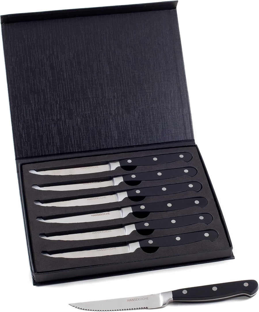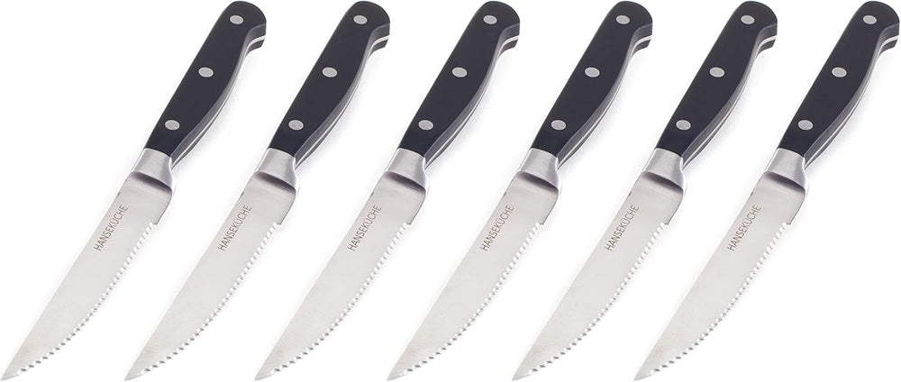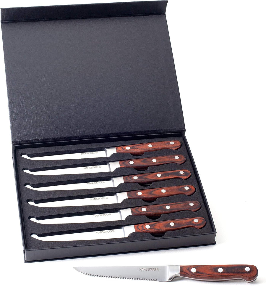 Hanseküche Steakmesser Set – 6x Hochwertige Steakmesser mit Holzgriff – Edles Besteck Set aus rostfr