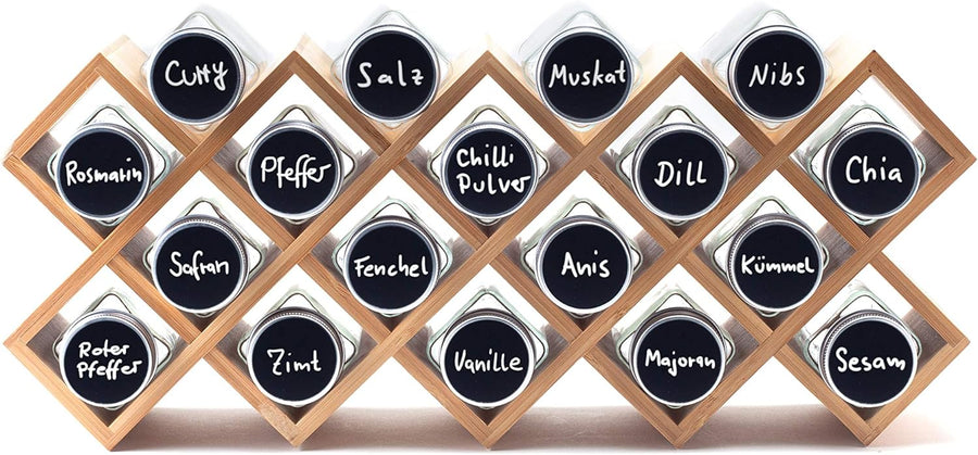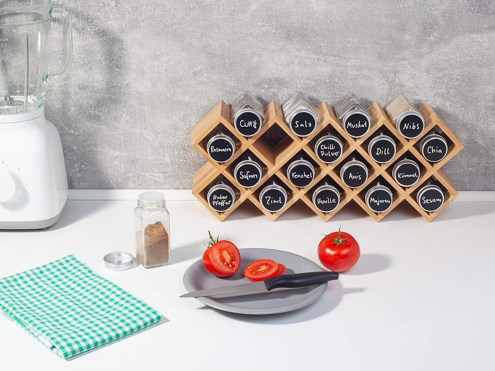 Hanseküche Gewürzregal aus Holz – Gewürzständer für den Schrank mit 18x Gewürzgläsern, Etiketten und