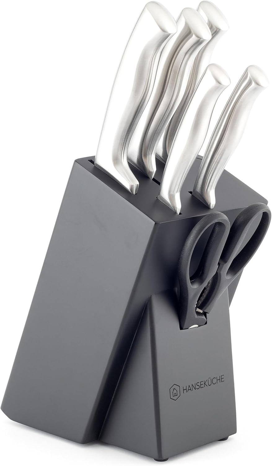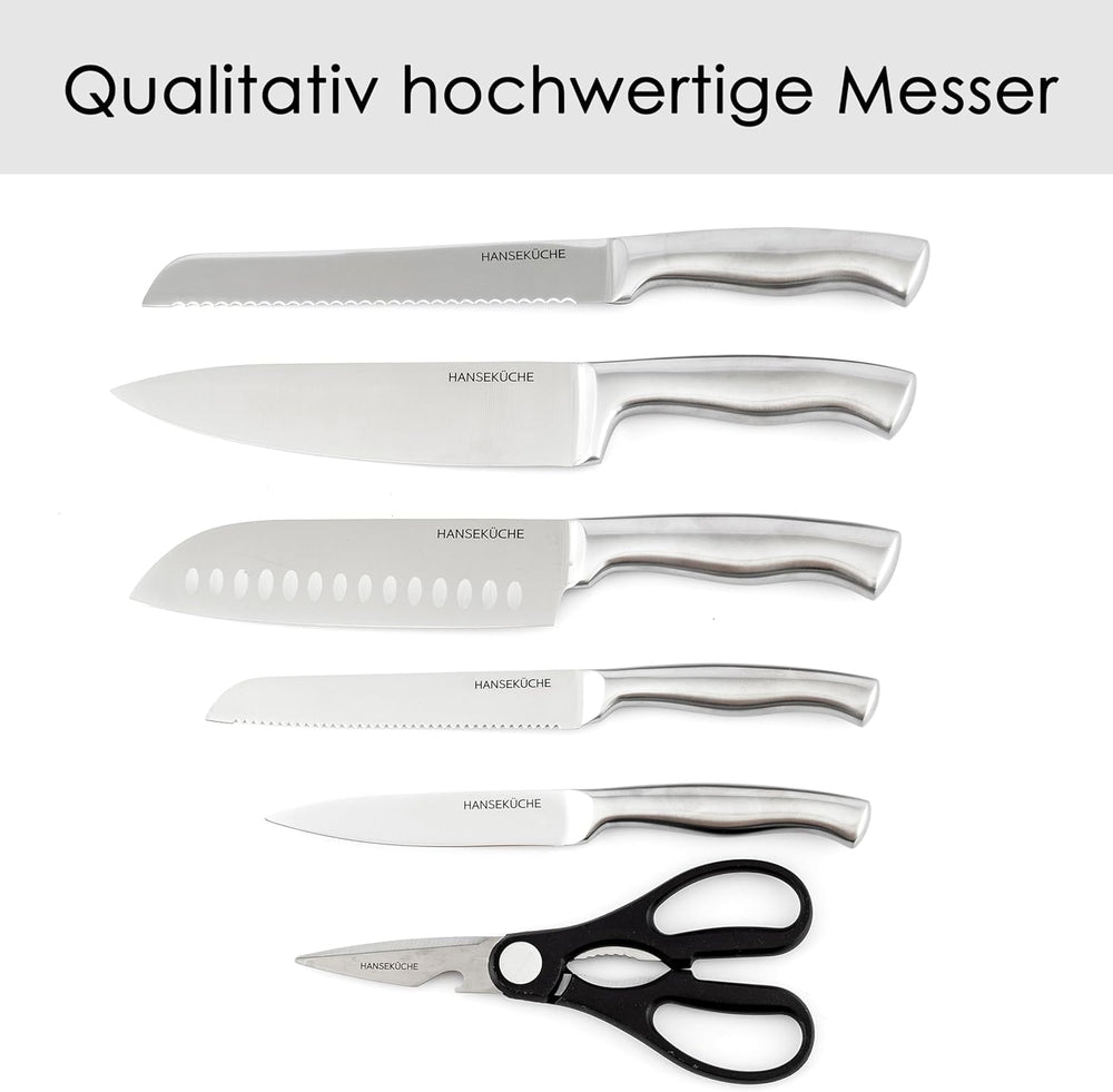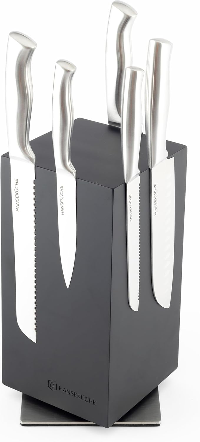 Hanseküche Messerblock - Messerset 7-teilig mit integriertem Messerschärfer - Messerhalter mit Messe