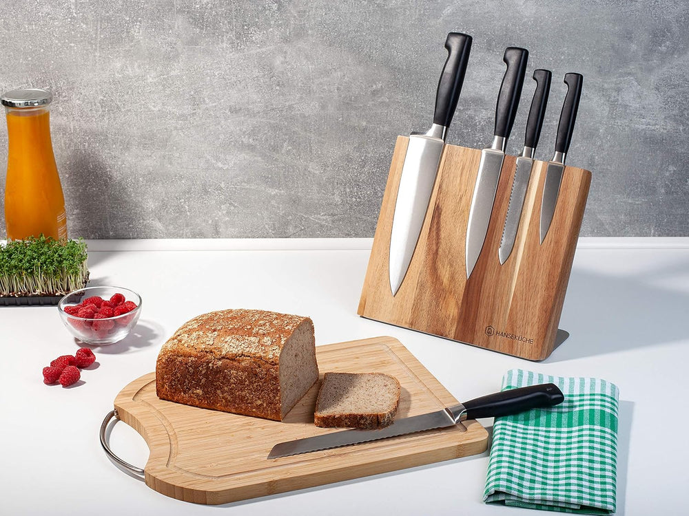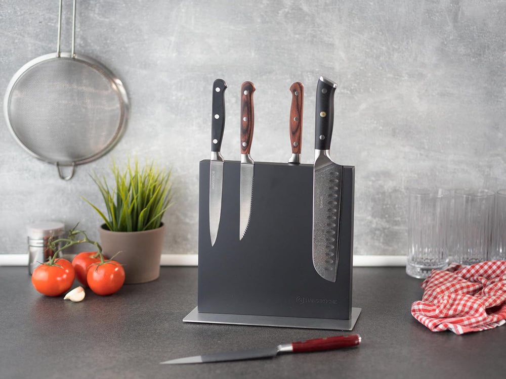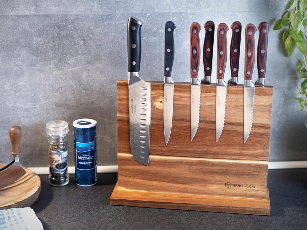 Hanseküche Messerhalter magnetisch – Magnetischer Messerblock aus Akazienholz, hochwertiges Messerbr