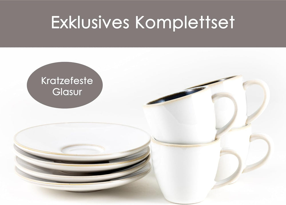 Hanseküche Espressotassen Set aus Steingut – Hochwertiges 4er Set, handgefertigt & dickwandig, Stein