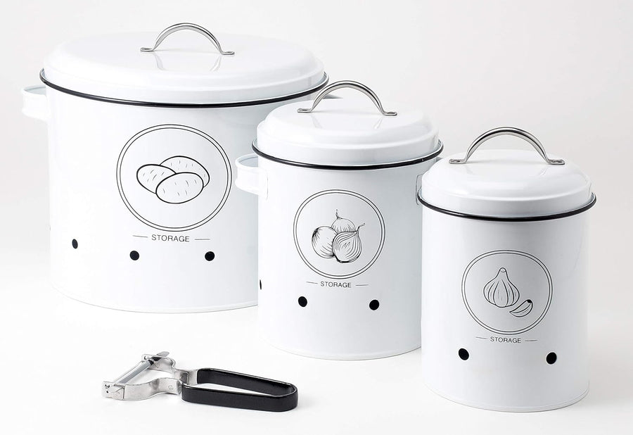 Hanseküche Vorratsbehälter Set mit Sparschäler - Hochwertiger Kartoffeltopf, Zwiebeltopf und Knoblau