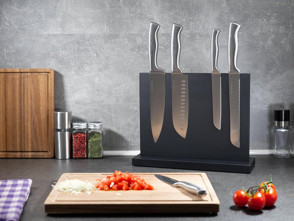 Hanseküche Messerblock - Messerhalter ohne Messer aus Holz Messerbrett beidseitig (Holzboden Schwarz
