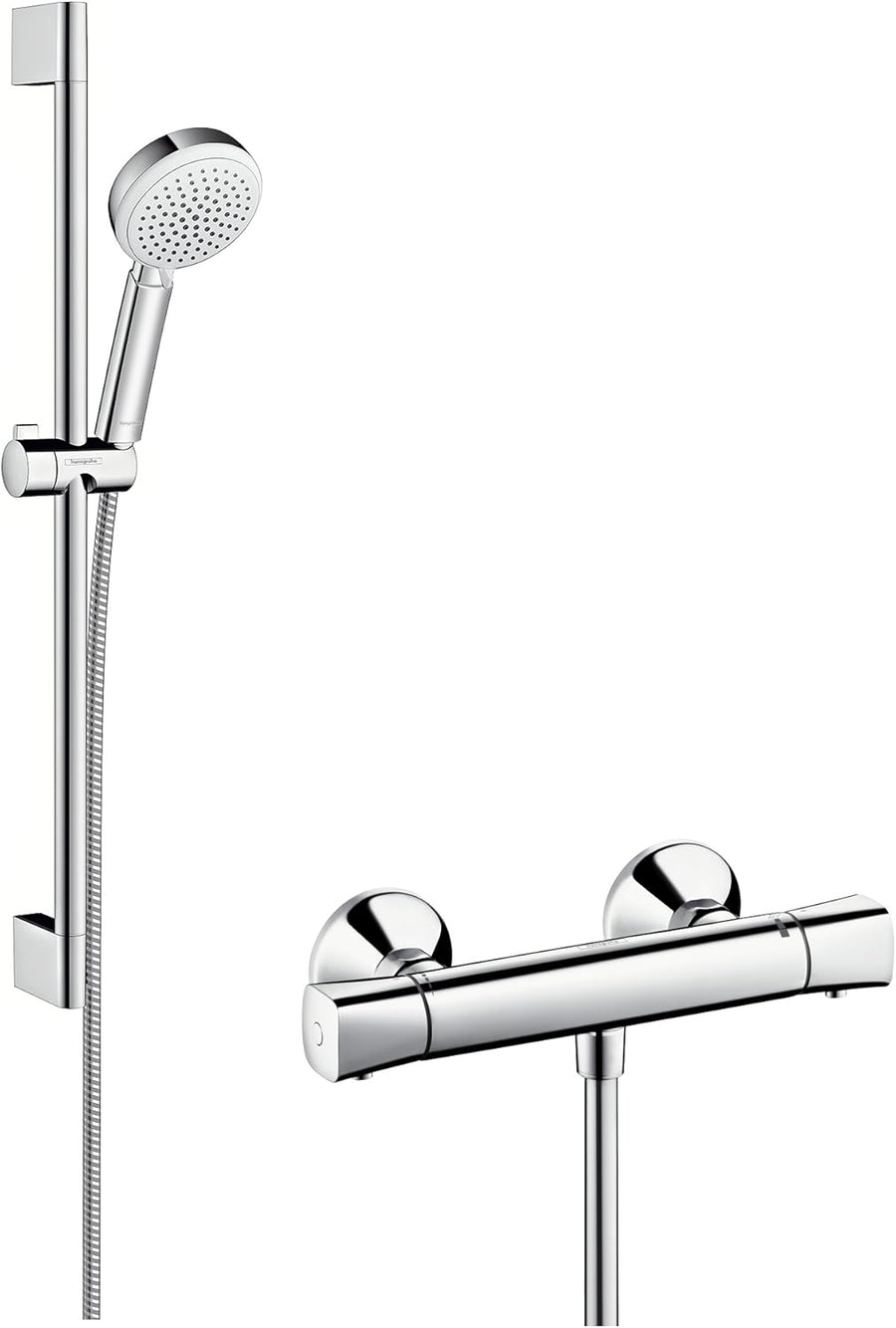 Hansgrohe 27030400 Crometta 100 Thermostatset 0,65m, 4 Strahlarten, Weiss/Chrom 0,65m Set, 0,65m Set