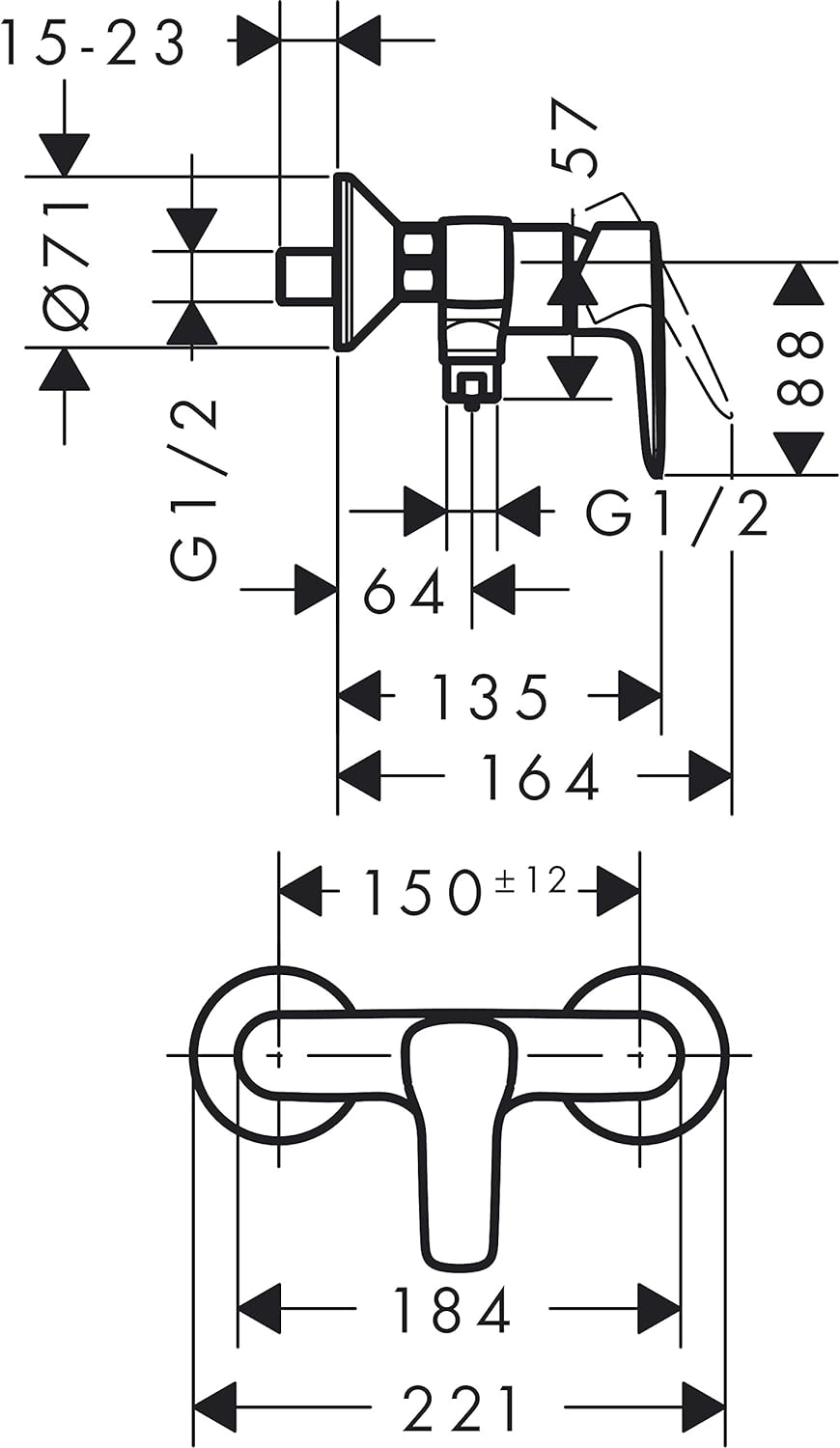 hansgrohe 2-Griff Brausemischer Logis, Aufputz Brausebatterie, Duscharmatur für 1 Funktion, Chrom Ch