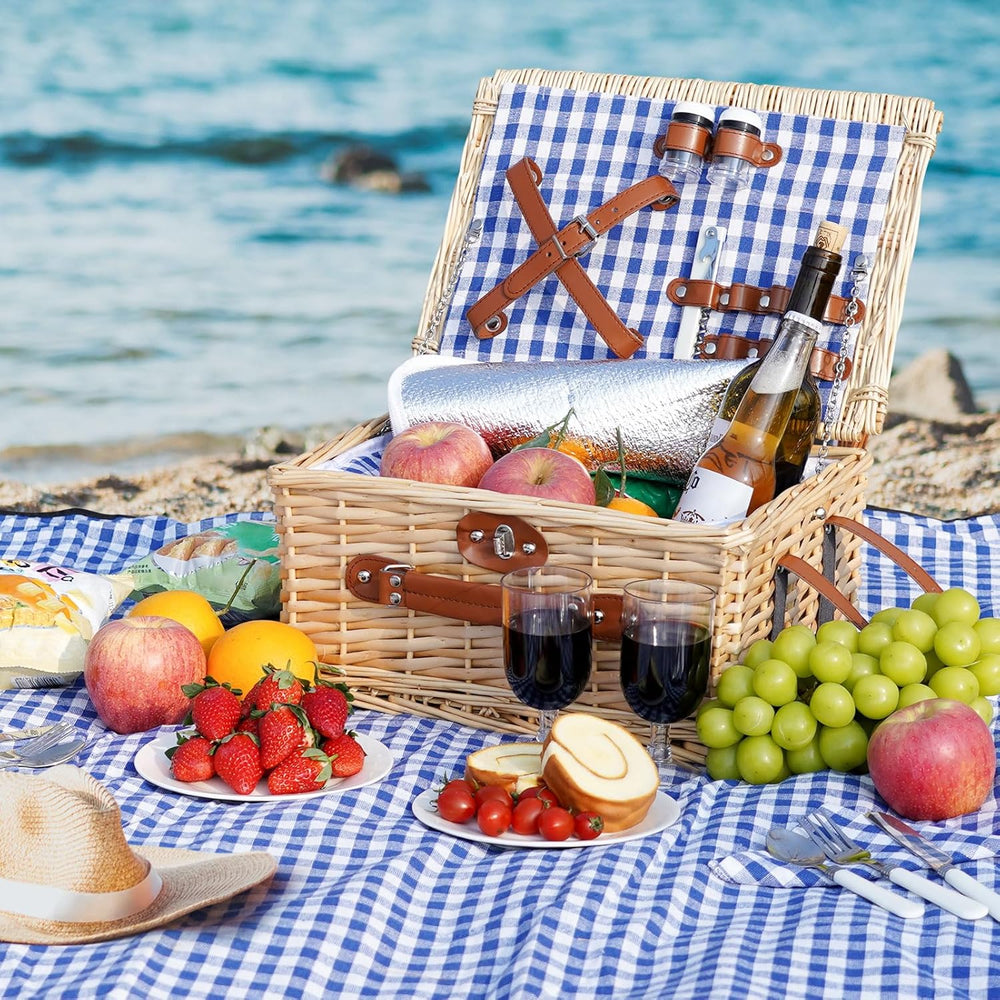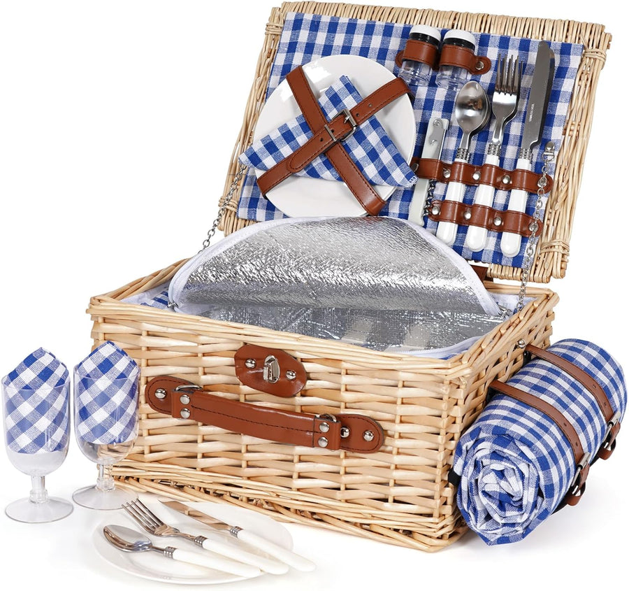 HappyPicnic Picknickkorb-Set für 2 – Weiden-Picknickkorb mit wasserdichter Decke & isoliertem Innenf