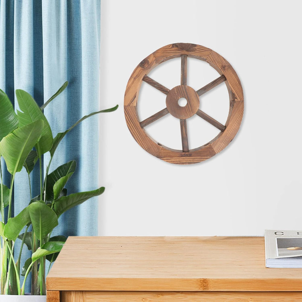 Happyyami Holz Wagenradwandkunst Alte Western Wagenrad Vintage Rustikaler Runder Holzwagen Wagen Wal