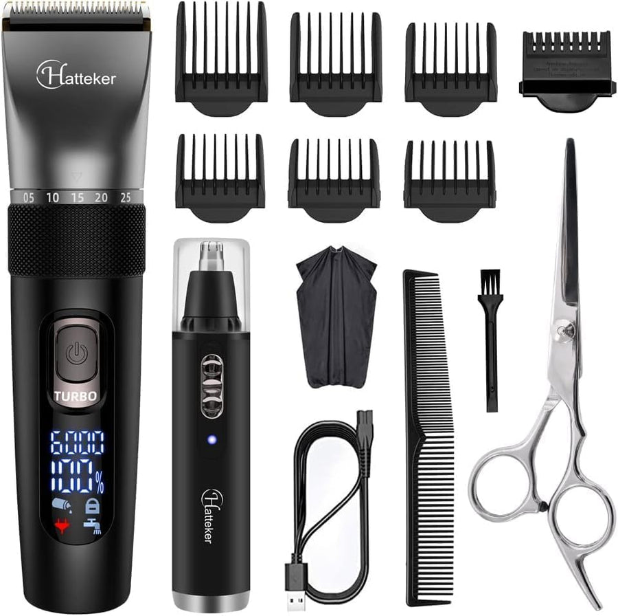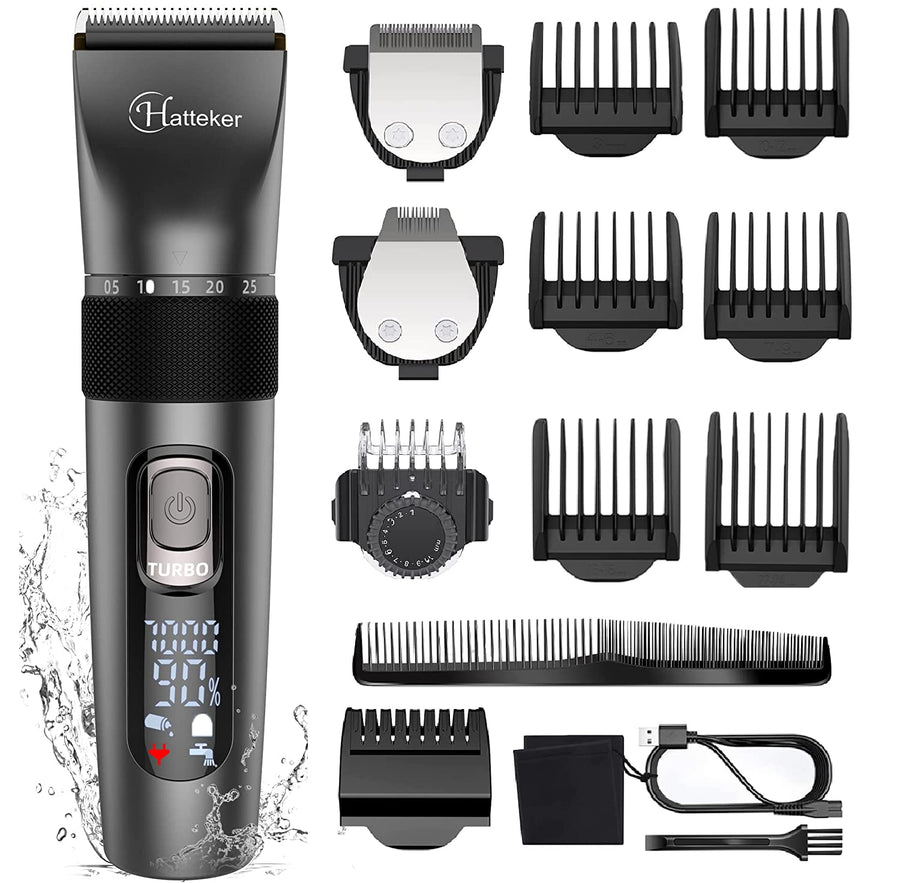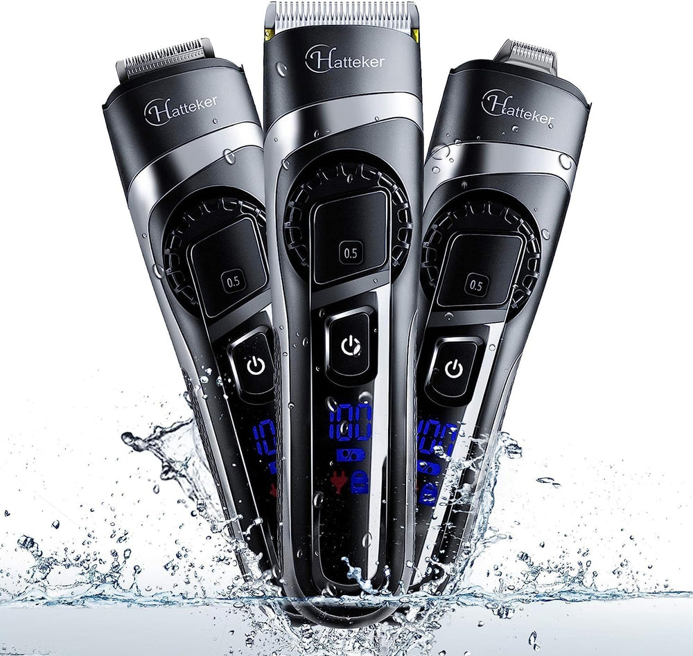Hatteker Haarschneider Professioneller elektrischer Bartschneider mit LCD-Display Drahtloser USB-Akk