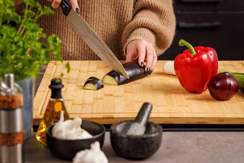 Massives Schneidebrett Küchenbrett Zubereitungsbrett Tranchierunterlage Bambus mit Saftrille Schneid