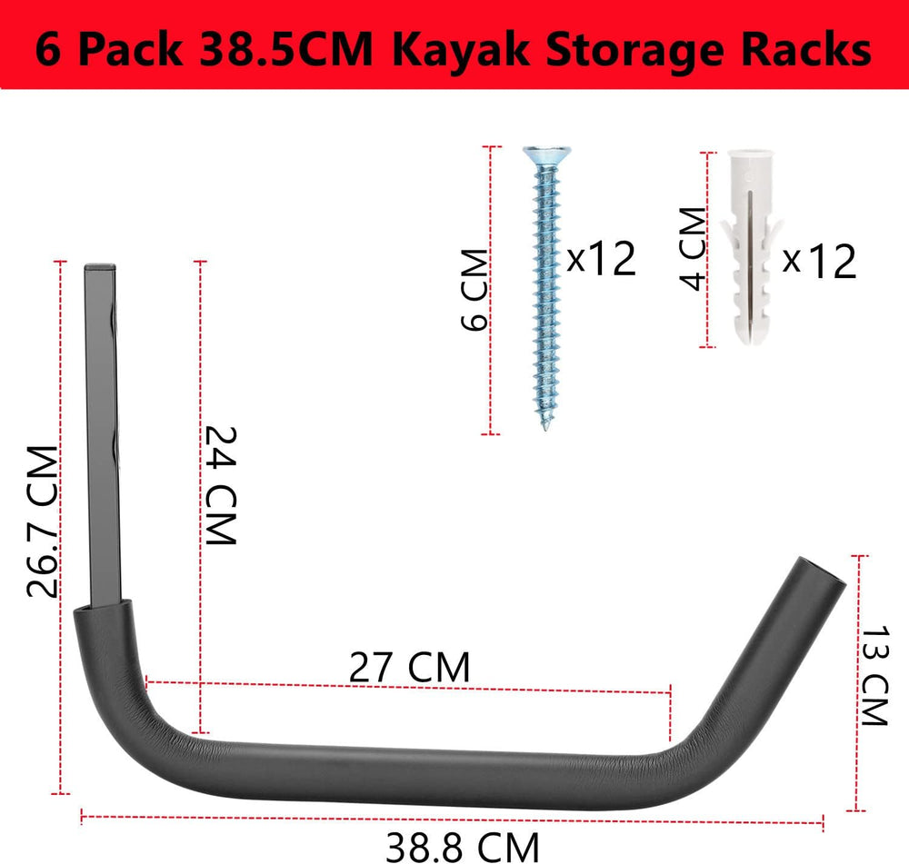 Heavdace 6 Stück Kajak-Aufbewahrungsregale, 39,4 cm, robuste Garagen-Aufbewahrung, SUP-Haken, Wandha