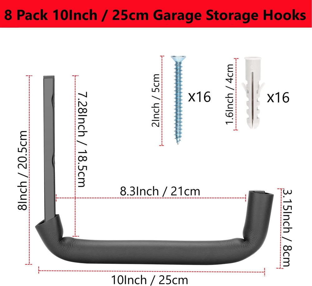 8 Stück Garagen-Aufbewahrungshaken, 25,4 cm, robuste Leiter-Aufhänger, schwere Wandmontage, Allzweck