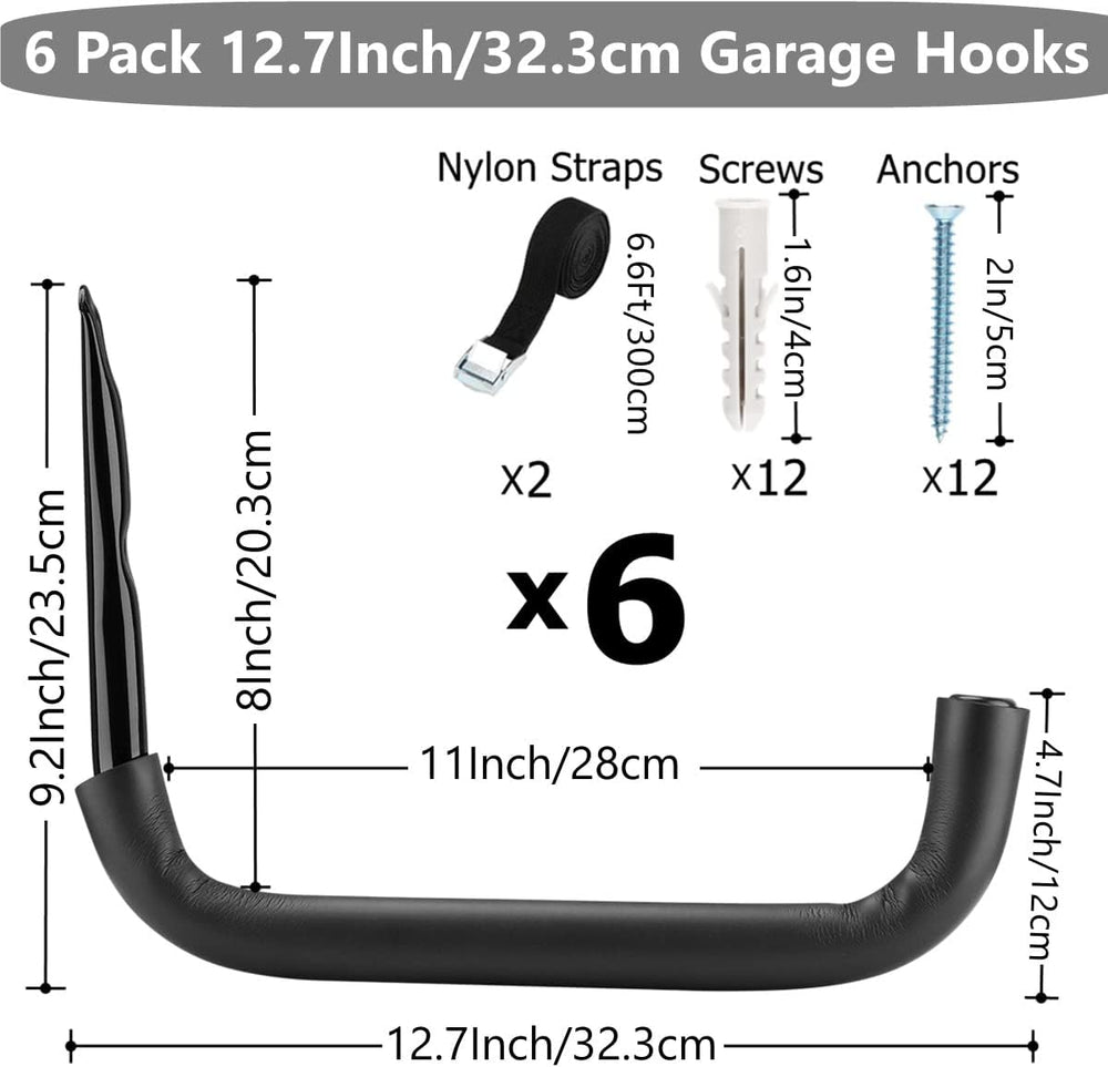 Heavdace 6 Stück Garagen-Aufbewahrungshaken, strapazierfähig, 32,7 cm Wandhalterung, Aufbewahrung, U