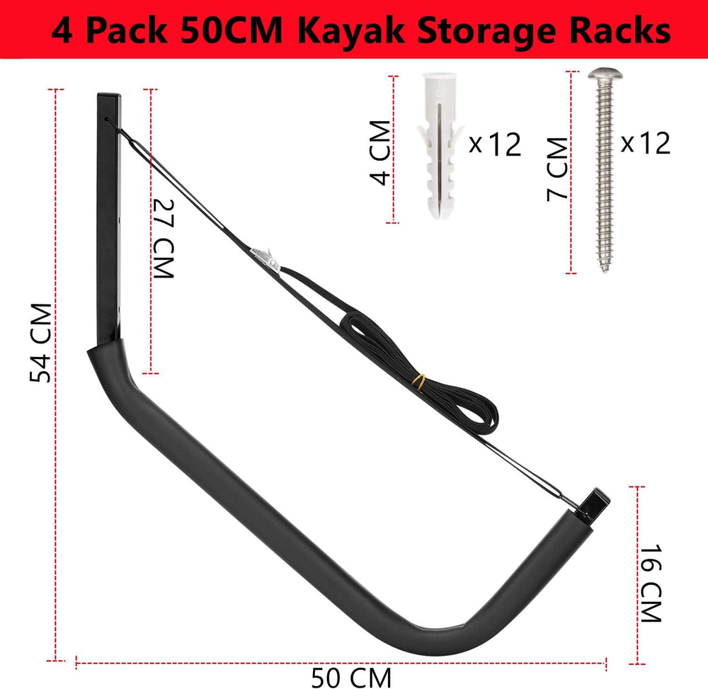 Kajak-Aufbewahrungsregale, 4 Stück, freistehende Kanu-Garagenhaken, 50 cm Wandhalterung, Surfbrett-A
