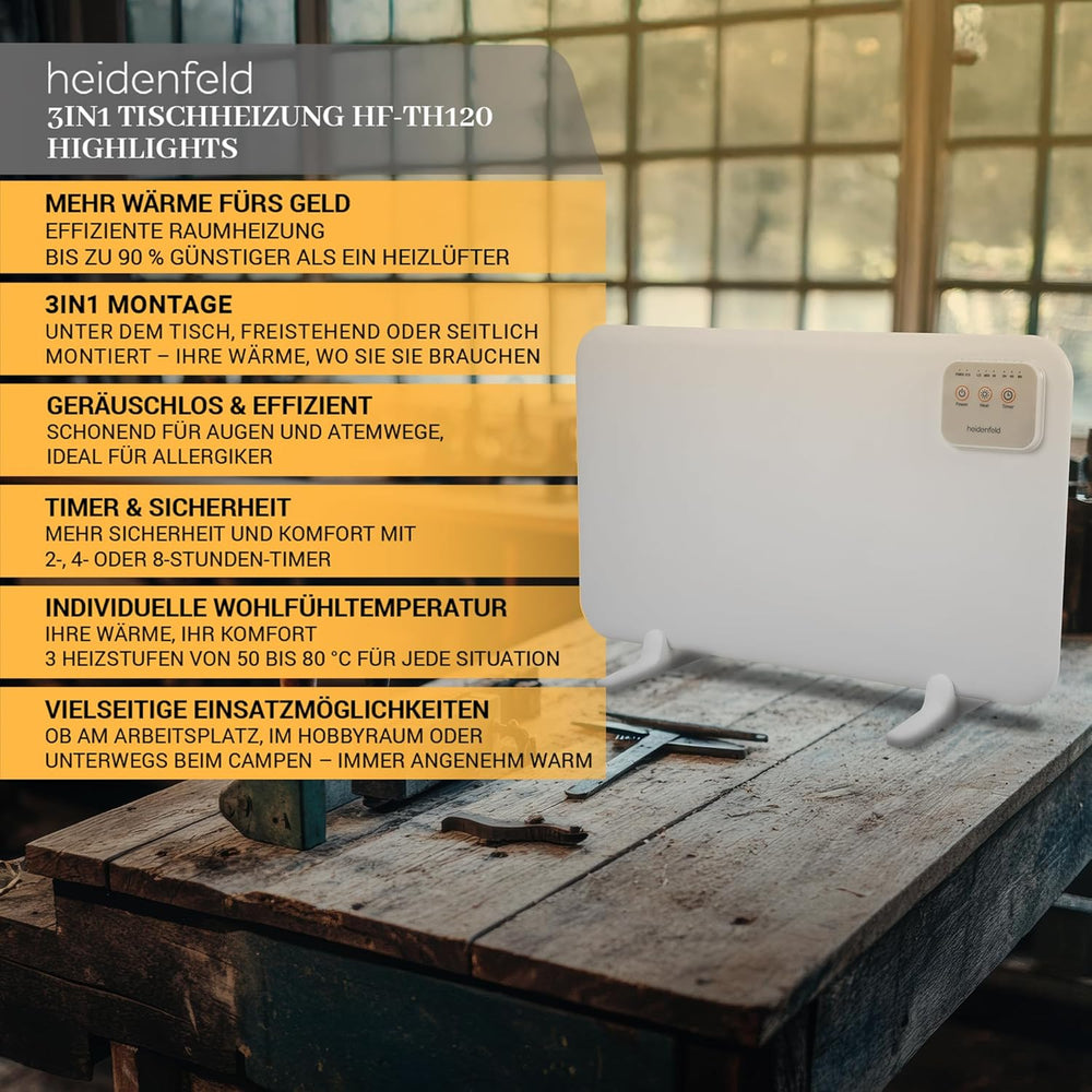 Heidenfeld Infrarotheizung 3in1 Tischheizung HF-TH120 | 120 Watt - Infrarot Heizkörper - Elektroheiz
