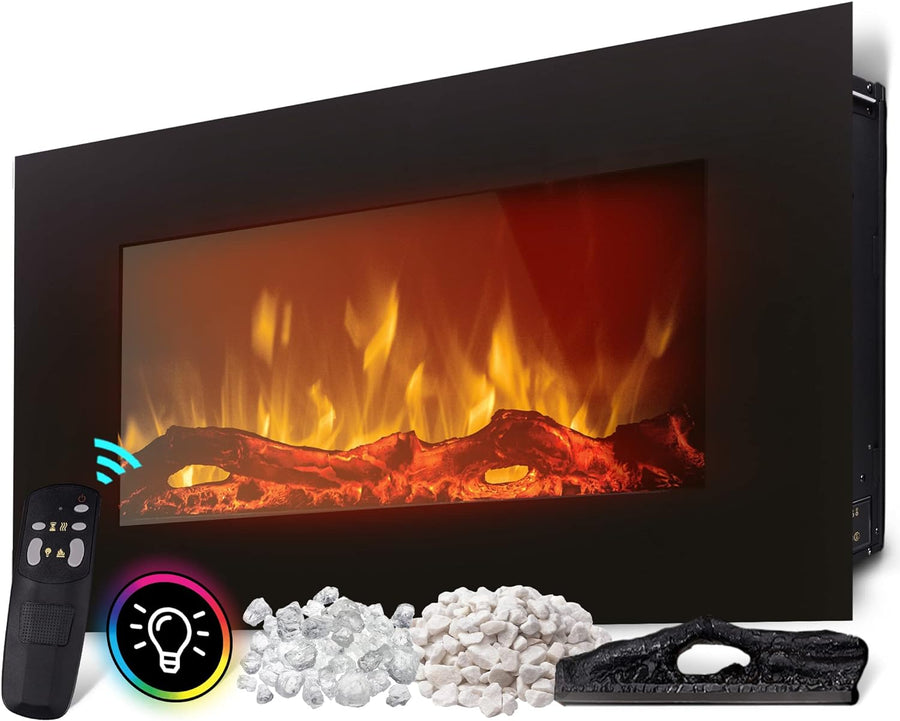 Heidenfeld Elektrokamin EK100 | 𝟯 𝐉𝐀𝐇𝐑𝐄 𝐆𝐀𝐑𝐀𝐍𝐓𝐈𝐄 - 2000 Watt - Energiesparende LEDs - Glasfront - 2