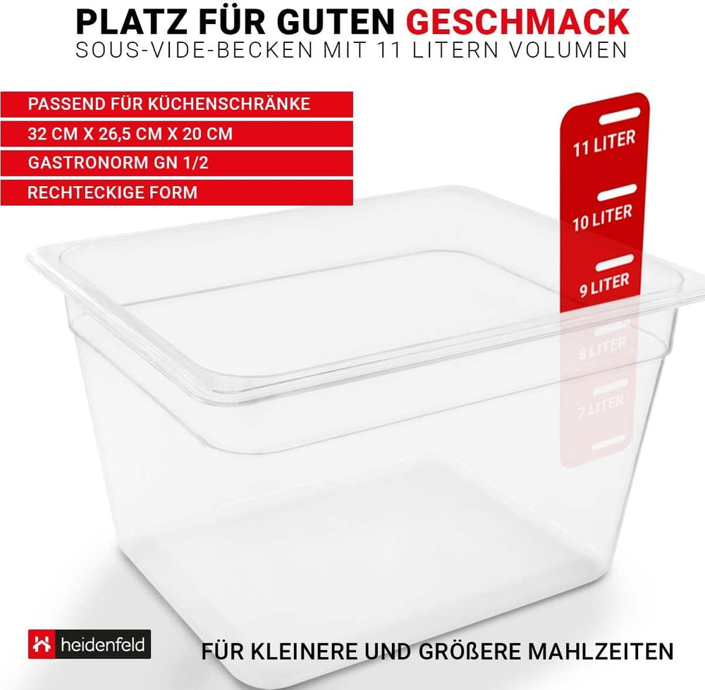 Heidenfeld SVS11 Sous Vide Garer Behälter - Extra gross 32.0 x 26.5 x 20.0 cm - Deckel - Rack - Behä