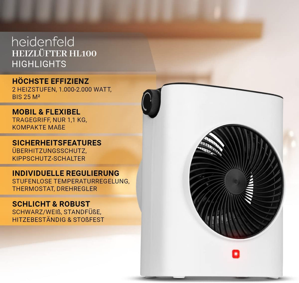 Heidenfeld Heizlüfter HL100 | 𝟯 𝐉𝐀𝐇𝐑𝐄 𝐆𝐀𝐑𝐀𝐍𝐓𝐈𝐄 - 2000 Watt - Heizkörper - Elektro Heizlüfter - Elekt