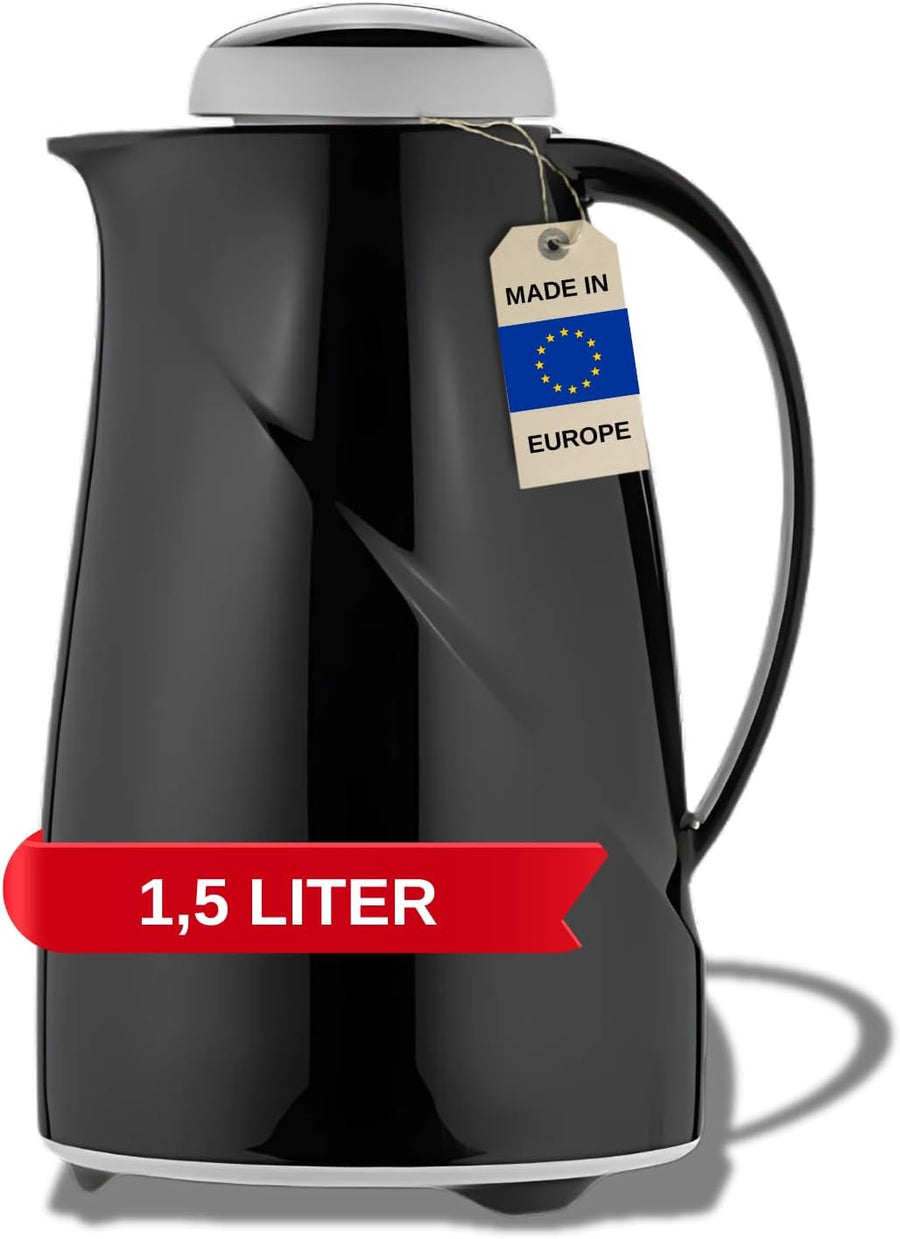 Helios Champion Edelstahl-Isolierkanne mit Drehverschluss 1,5 l schwarz 1,5 Liter Schwarz, 1,5 Liter