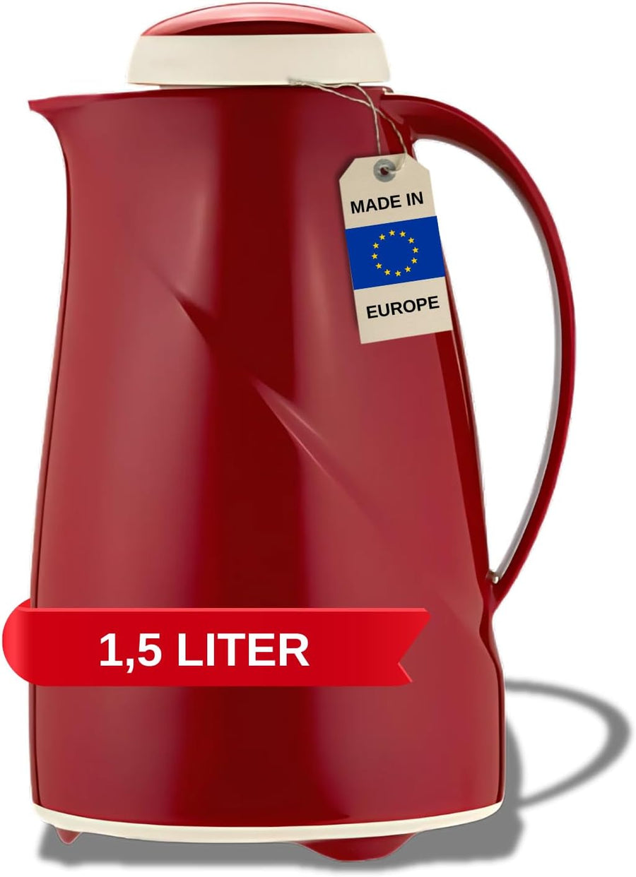 Helios Isolierkanne Wave, 1,5 Liter, Kunststoff, rot, Drehverschluss, spülmaschinenfest Rot 1,5 Lite