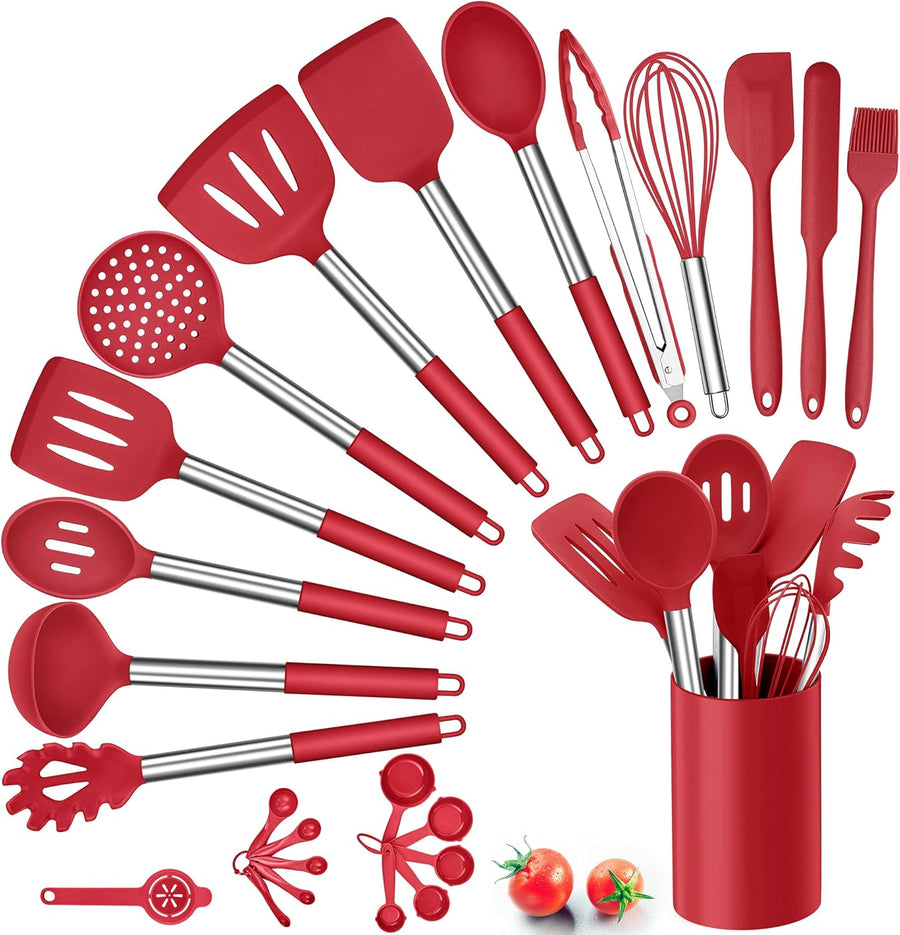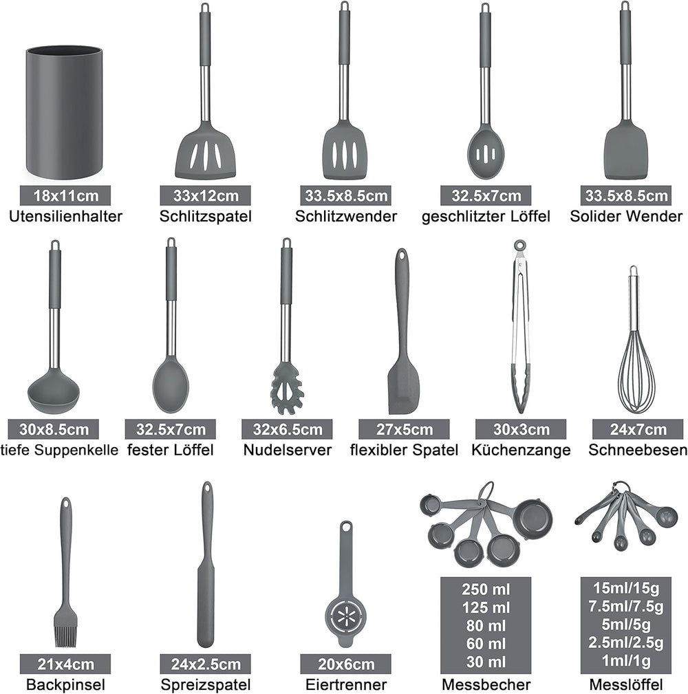 Herogo Küchenhelfer Set, 25 Stück Silikon Küchenutensilien mit Halter, Hitzebeständiger Kochbesteck