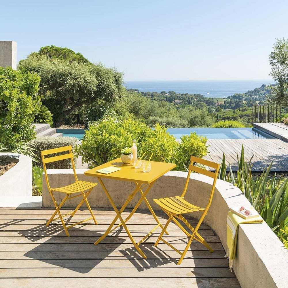 Hespéride Quadratischer klappbarer gartentisch Greensboro senfgelb 2-sitzer aus epoxybehandeltem Sta