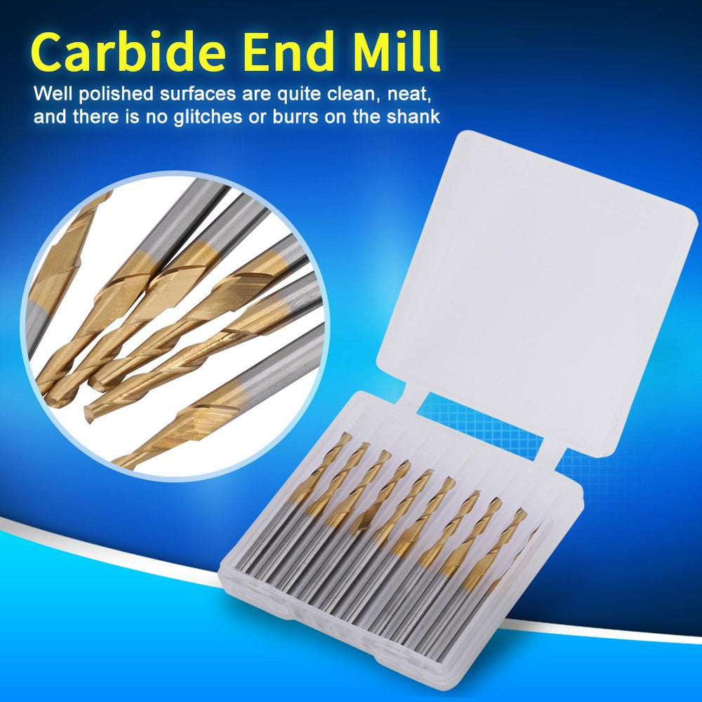 10 pcs Schaftfräser Hartmetall Coated Fräsbohrer Doppel-Fräser Fräserset 3.175mm Schaft 2mm Schneidk