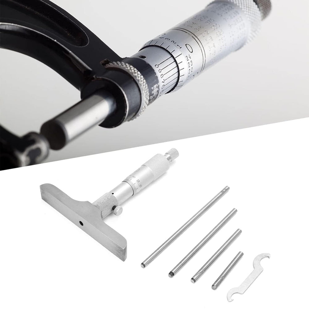 0,01 mm Tiefenmessschraube mit 5 Stück Pleuel Tiefenmessgerät Gage(0-100mm 4inch), 0-100mm 4inch
