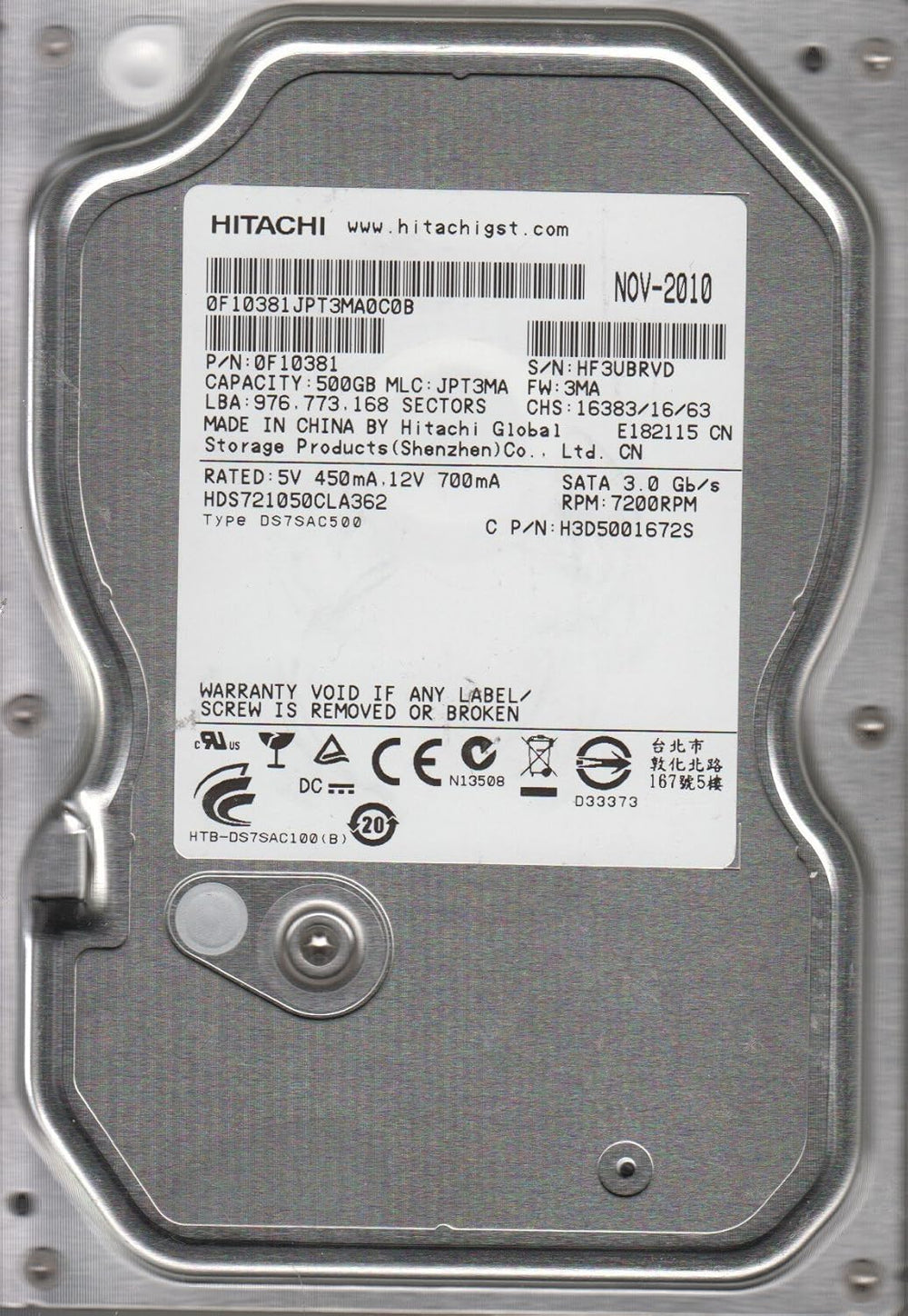 Hitachi Deskstar HDS721010CLA332 1TB interne Festplatte (8,9 cm (3,5 Zoll), SATA-II, 7200rpm, 32MB C