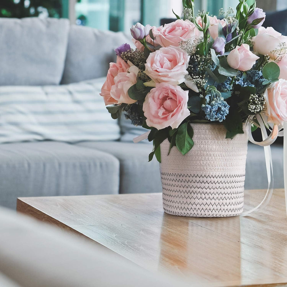 Hivexagon 2er Pack Hanging Woven Rope Aufbewahrungskörbe mit Griff - Wandkörbe 6 x 5,5 Zoll runde Be
