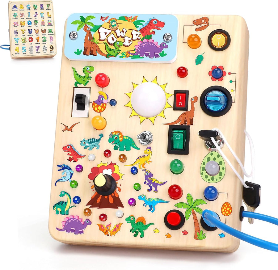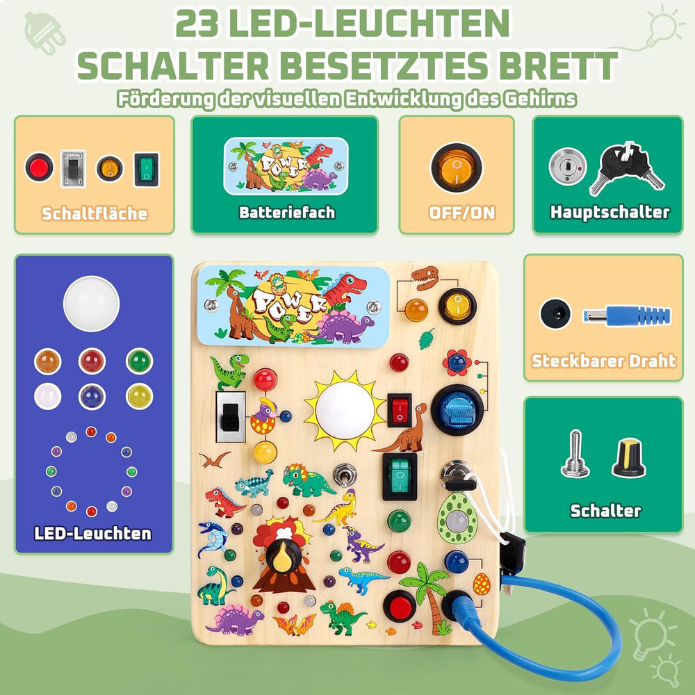 Dinosaurier Busy Board Montessori Spielzeug ab 1 jahr Activity Board Holzspielzeug Mit 10 Schaltern