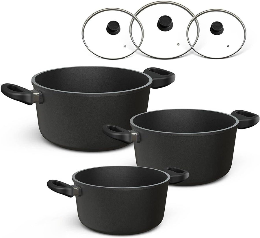 Hoffmann Topfset Induktion mit Glasdeckel, 6-teilig I Set alle Herdarten auch Induktion I Töpfe Made