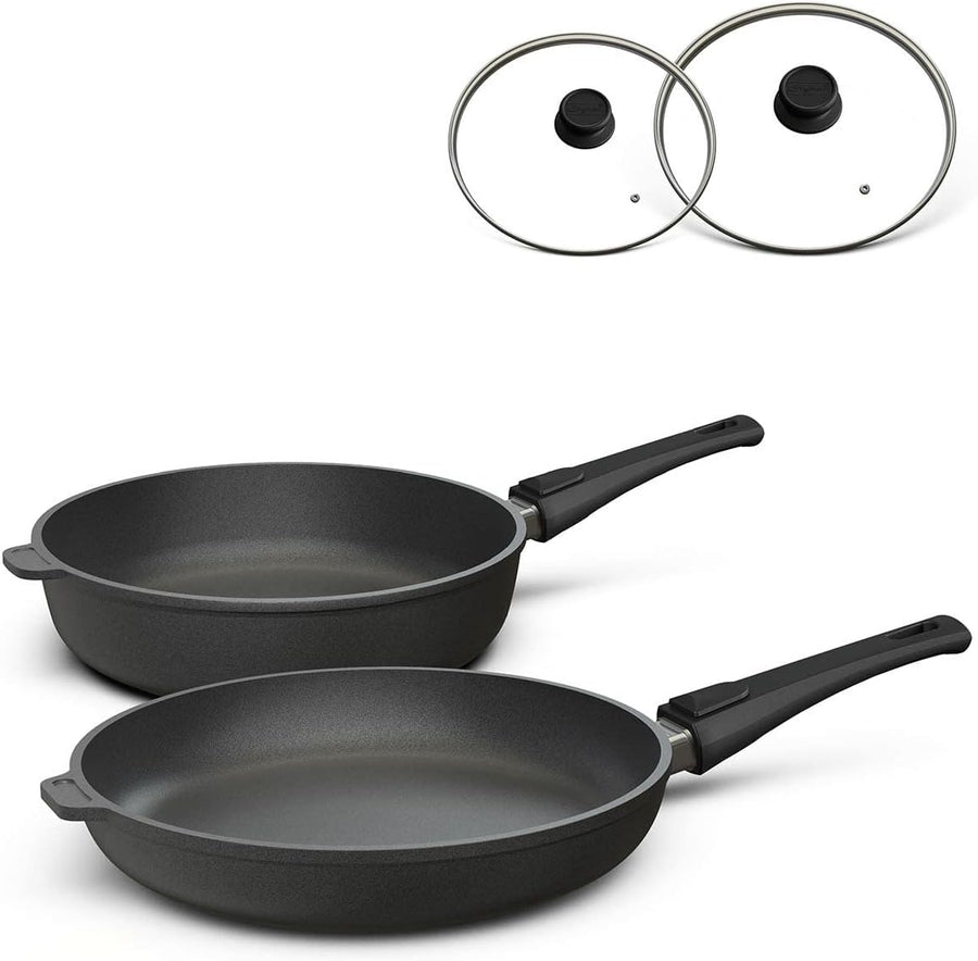 Hoffmann Aluguss Pfannenset mit Glasdeckel und abnehmbaren Griff, 4-teilig I Für alle Herdarten auch