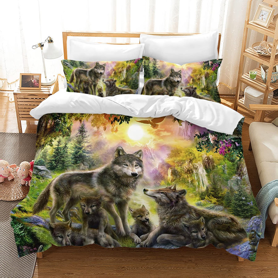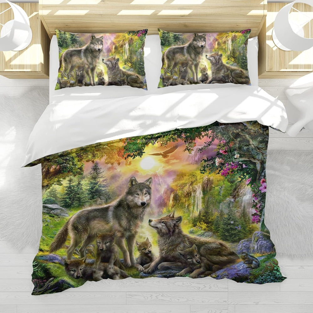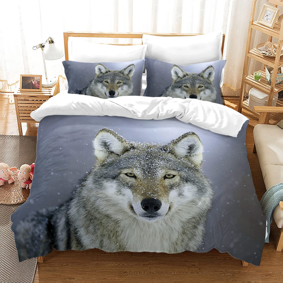 Hoimlm Kinder Bettwäsche 135x200 Wolf Print Mikrofaser Bettbezug mit 2 kopfkissenbezug, Jungen Teens