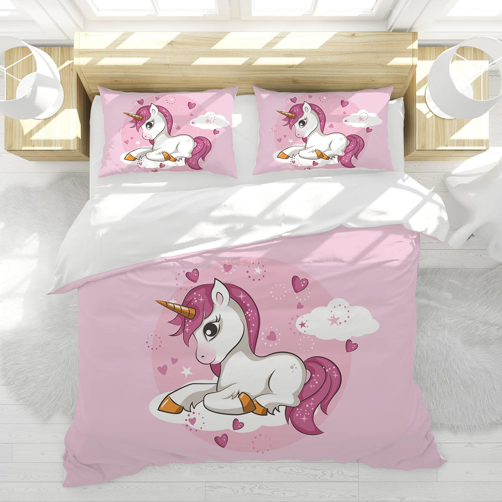 Hoimlm Einhorn Bettwäsche,Kinder Bettwäsche Set mit Bettbezug and 2 Kissenbezug,Cartoon Einhorn mikr