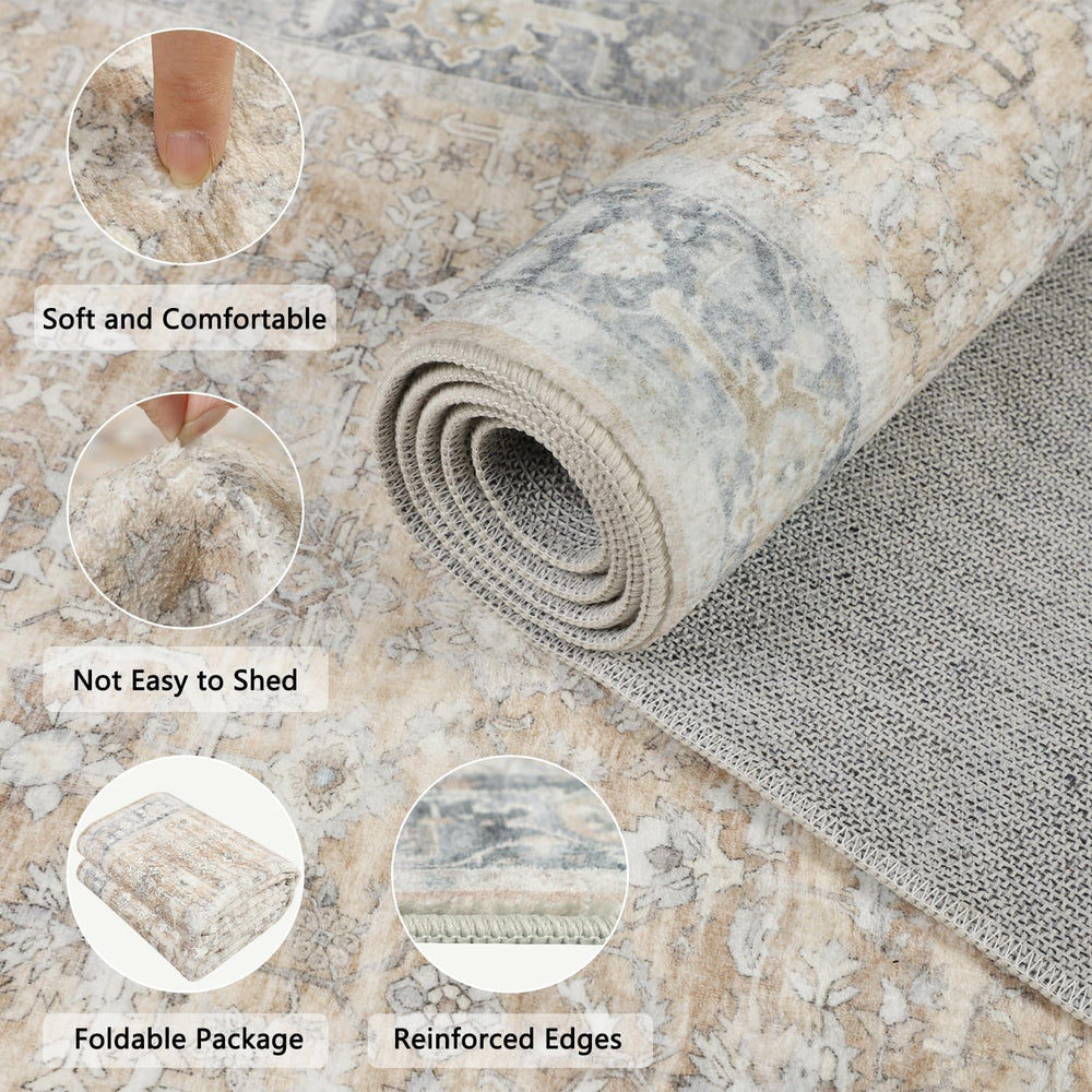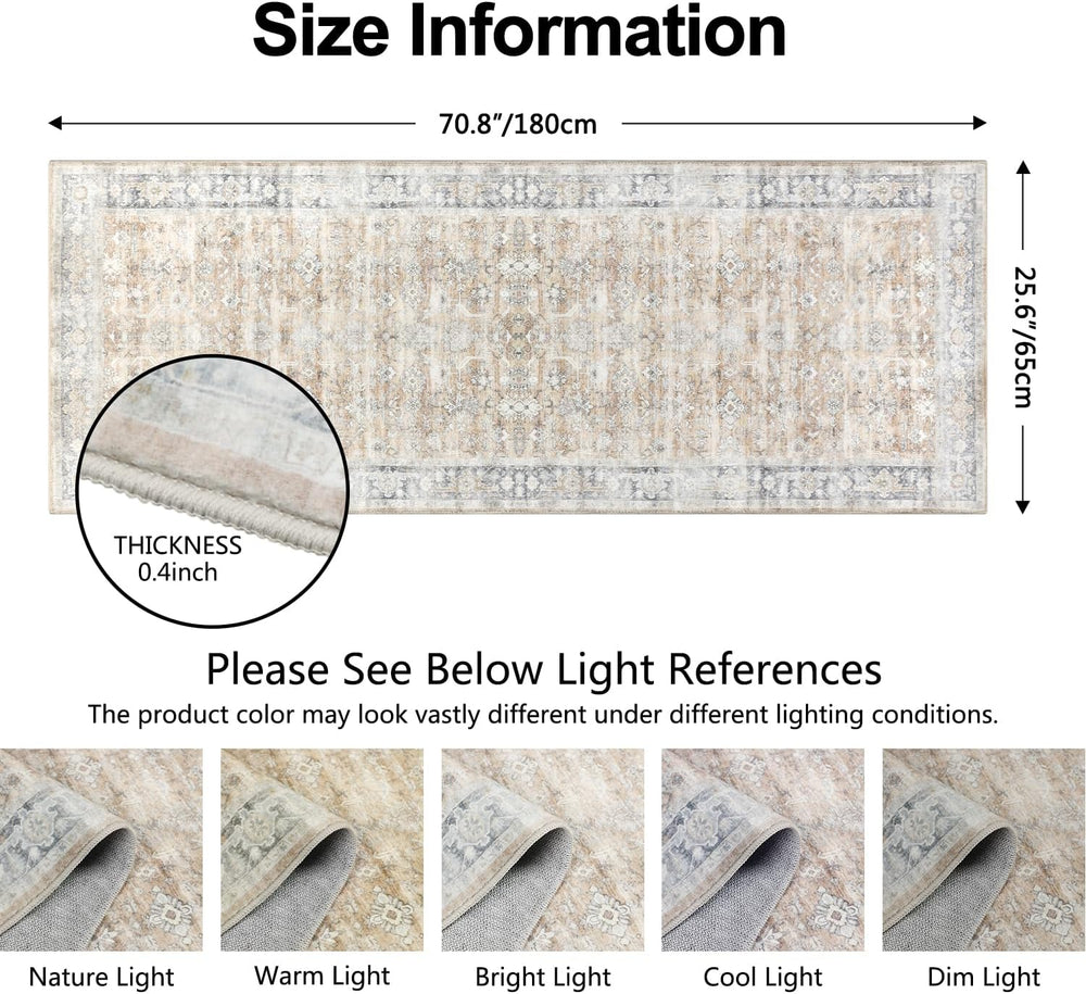 Homcomodar Vintage Flur Runner Teppiche 60x150cm Waschbare Distressed Kitchen Runner Teppiche mit Gu