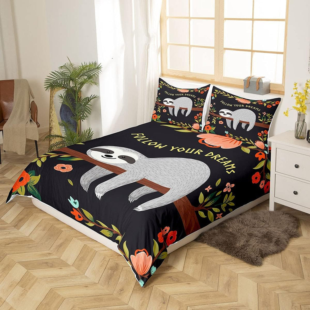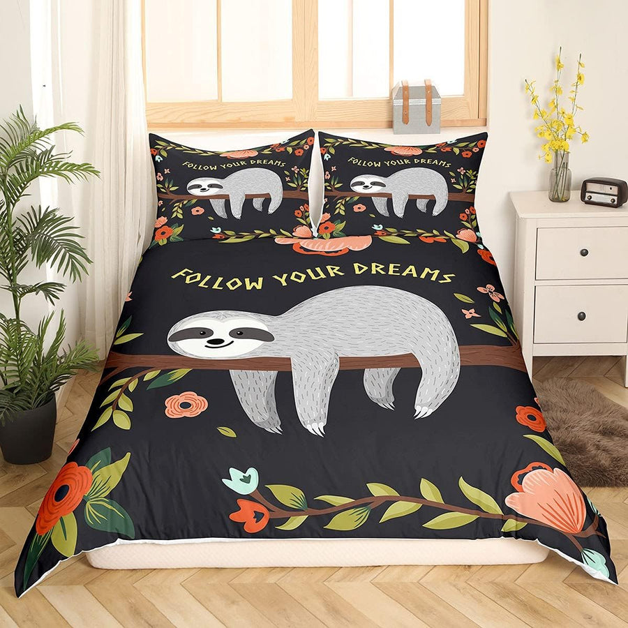 Faultier Bettbezug Set 135x200, Niedliche Karikatur Faultier Bettwäsche Set Kinder Mädchen Jungen We