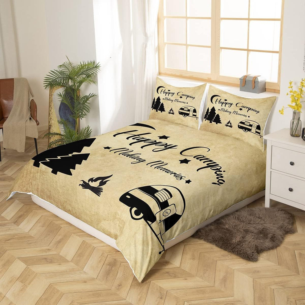 Homewish Camping Bettwäsche für Erwachsene Jungen Happy Camping Bettbezug rustikales Bauernhaus Bett