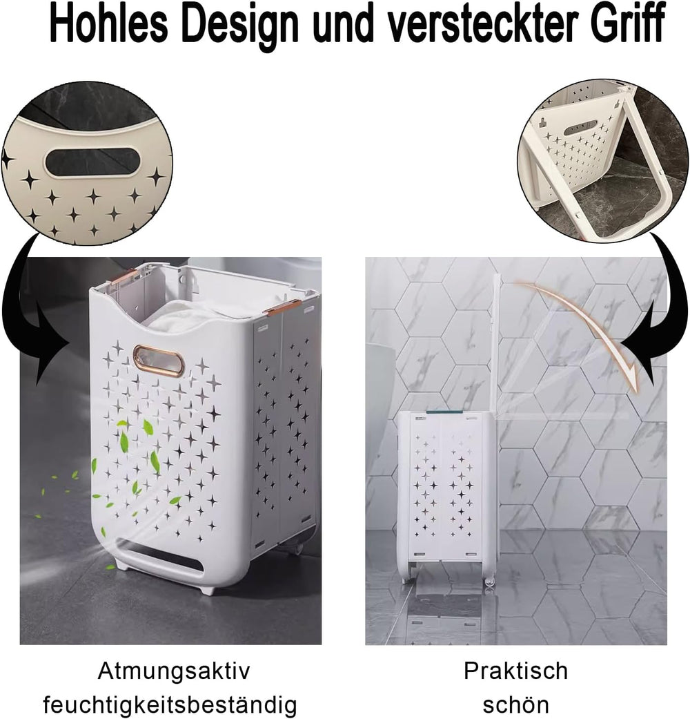 Hooha Faltbarer Wäschekorb Auf Rollen 2 Fächer Wäschekorb Plastik 77 Liter Wäschewagen für Schmutzwä
