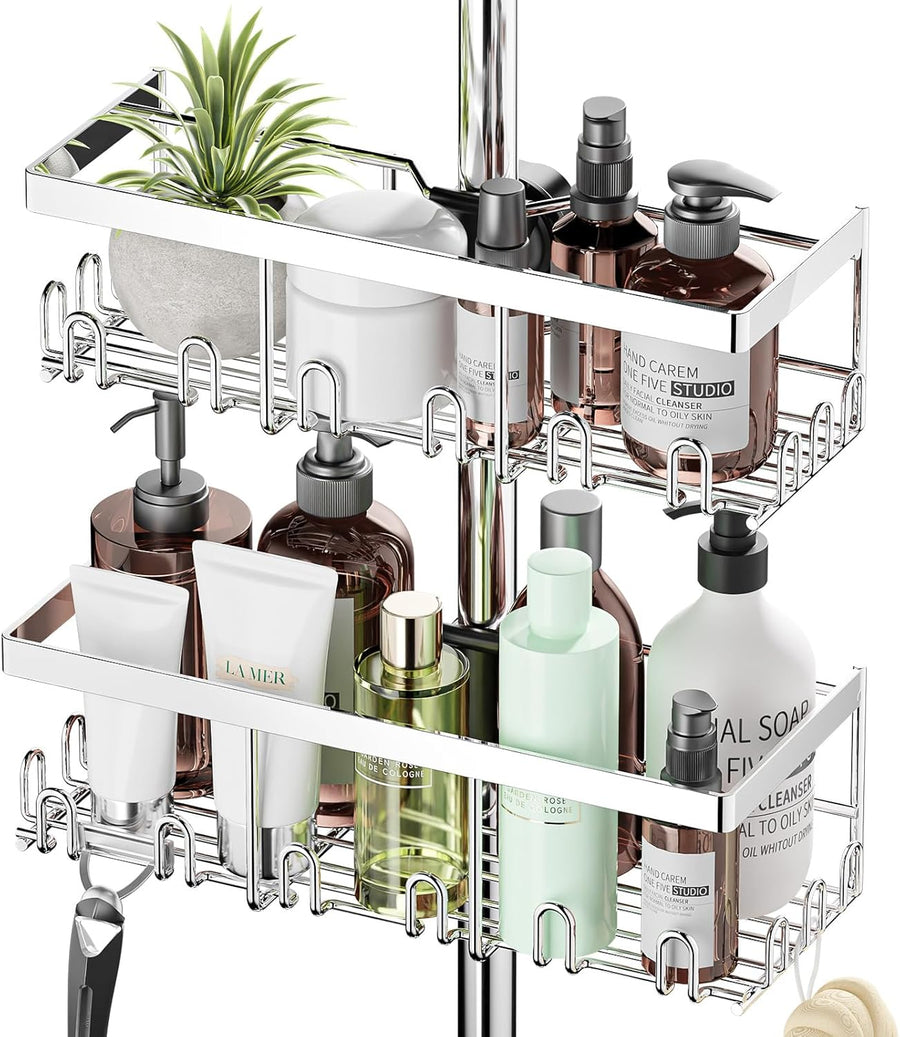 HouseUp Duschablage Ohne Bohren, 2 Stück Duschstangen-aufbewahrungsregal Edelstahl für 18 mm-25 mm D