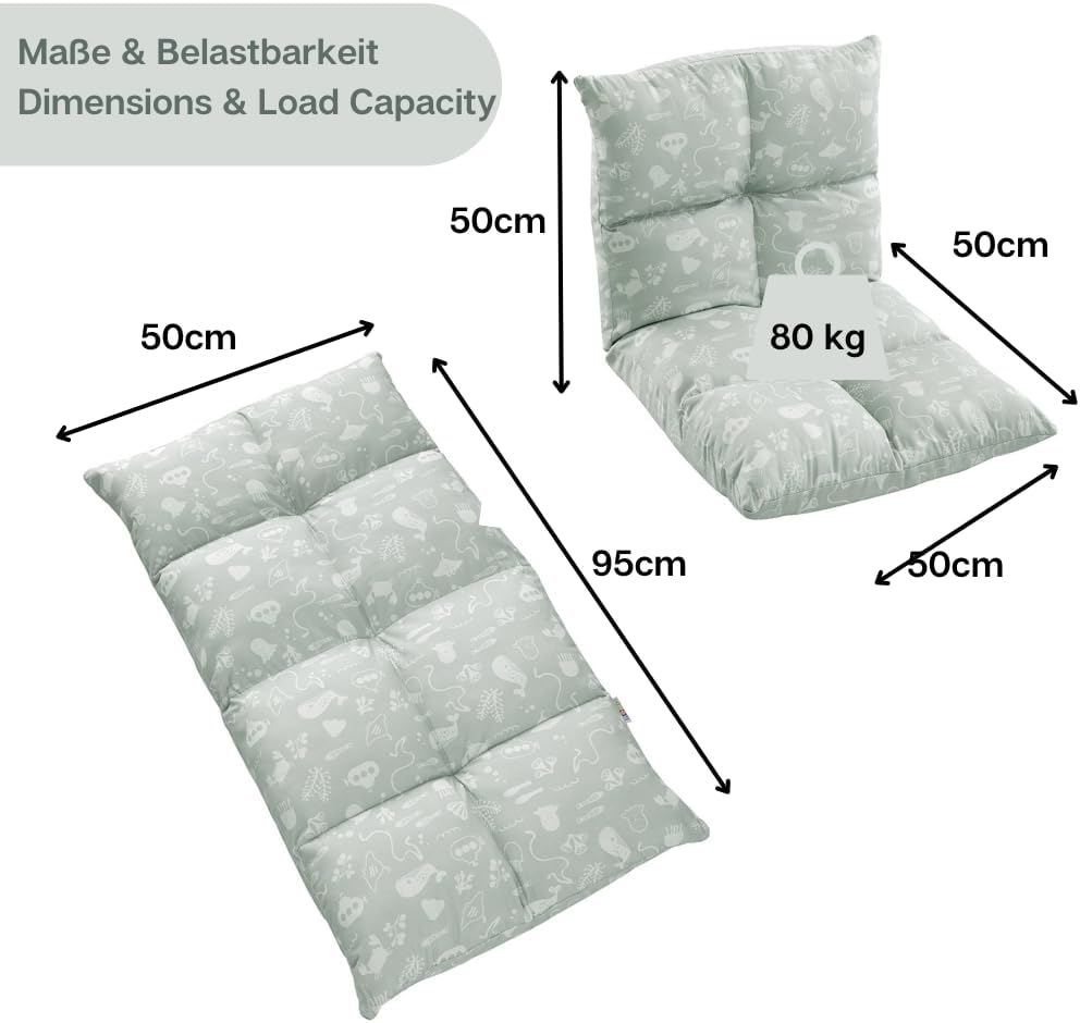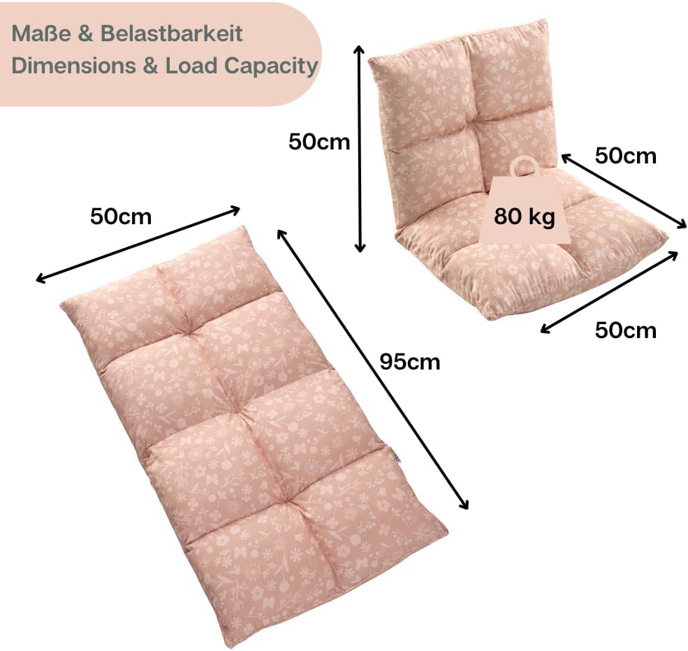 howa 2 in 1 Kindersessel + Kinderliege Bodensessel Lehne 6 Fach verstellbar Flowers 86012